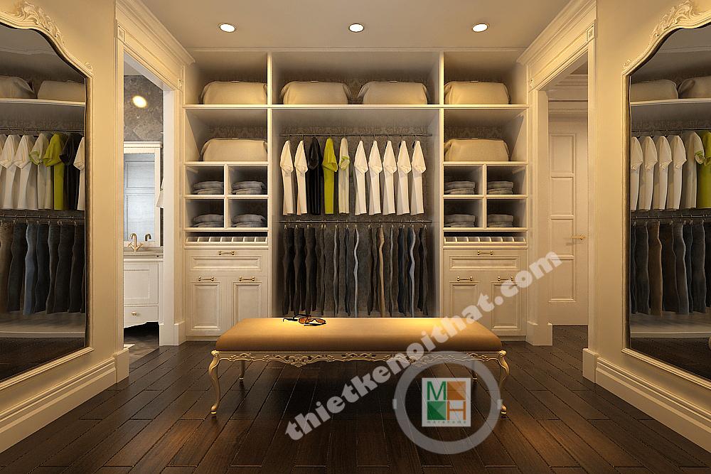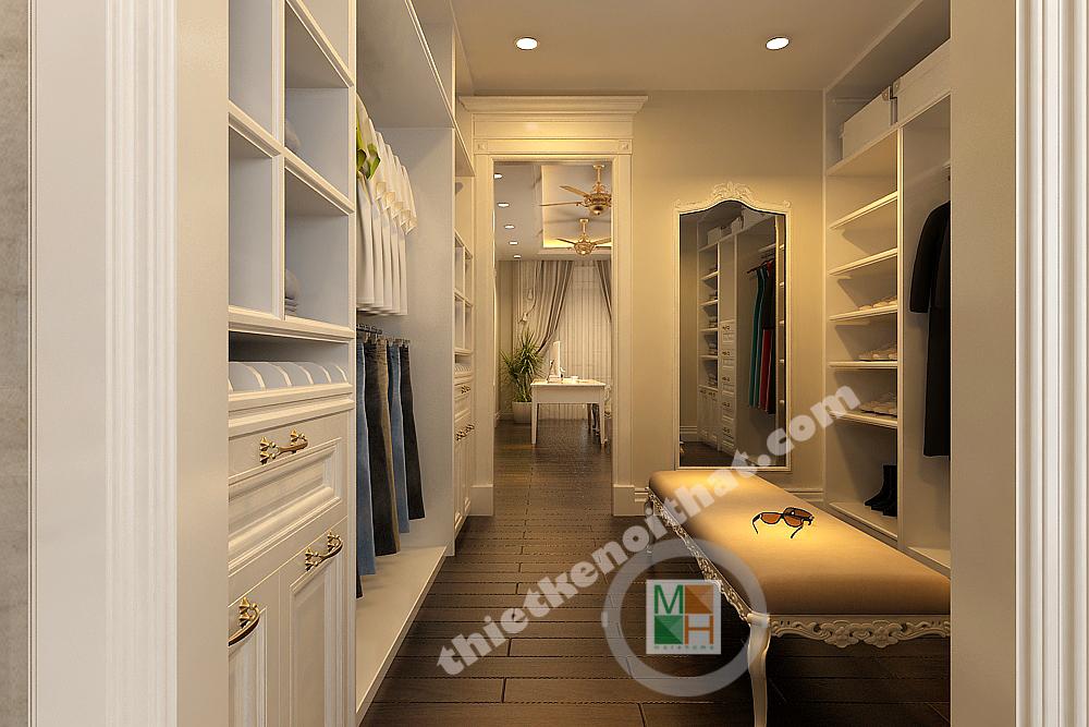 Căn phòng đặc biệt nhất của ngôi nhà là sự liên thông giữa không gian đọc sách, nơi lưu trữ quần áo và phòng tắm. Thư phòng với hệ thống giá sách kéo dài hết mảng tường, giúp gia chủ có thể dễ dàng lưu trữ và phân loại sách cho mình. Buồng cất quần áo cũng có khá nhiều kệ và ngăn tủ nên các bà nội trợ tha hồ lưu trữ phụ kiện và các món đồ thời trang khác.