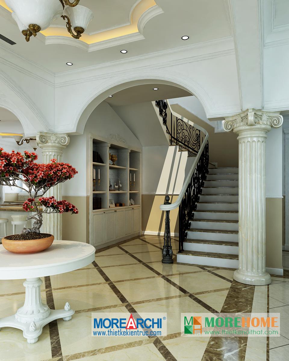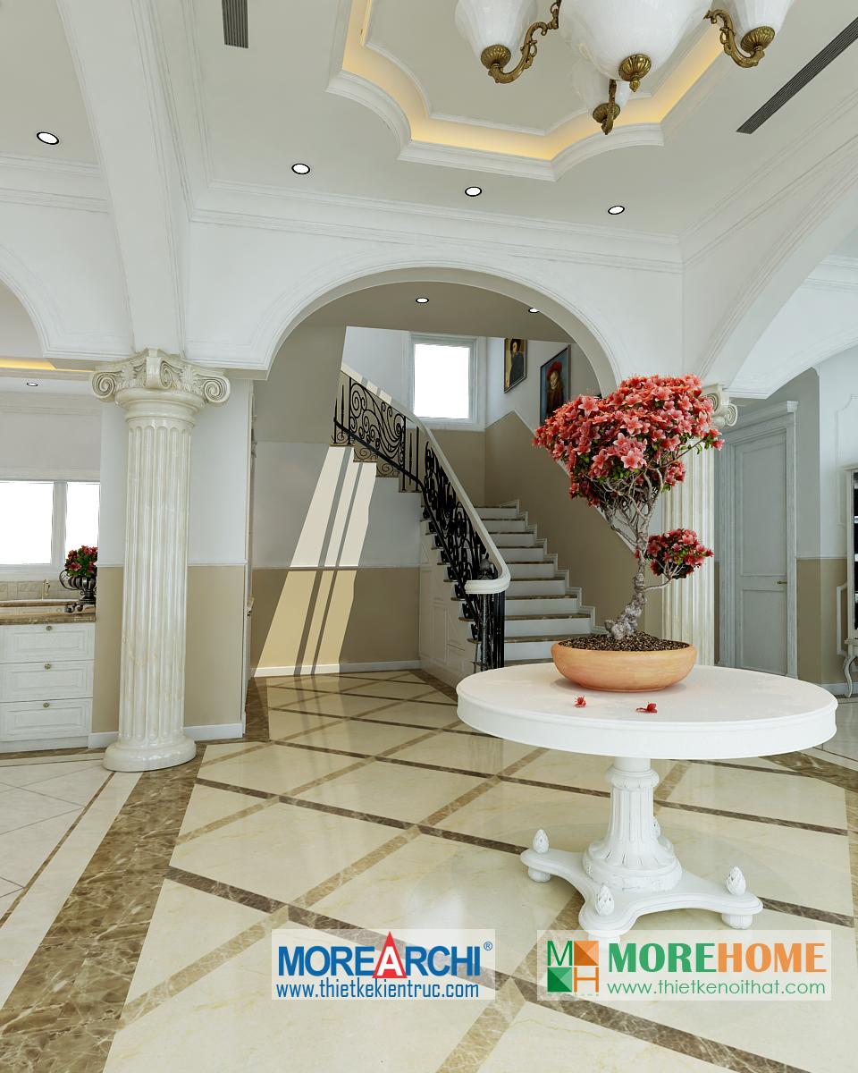 Căn nhà có diện tích rộng rãi, không gian mở và thoáng, diện tích sân vườn và hướng sáng khá rộng chính là những lợi thế đặc biệt cho việc định hình phong cách và cái “Tôi” của gia chủ. Thiết kế nội thất mang phong cách tân cổ điển, có hơi hướng châu Âu mang đến cảm giác sang trọng và quý phái. Đặc điểm nổi trội của kiến trúc tân cổ điển chính là sự kết hợp của đường nét và màu sắc.