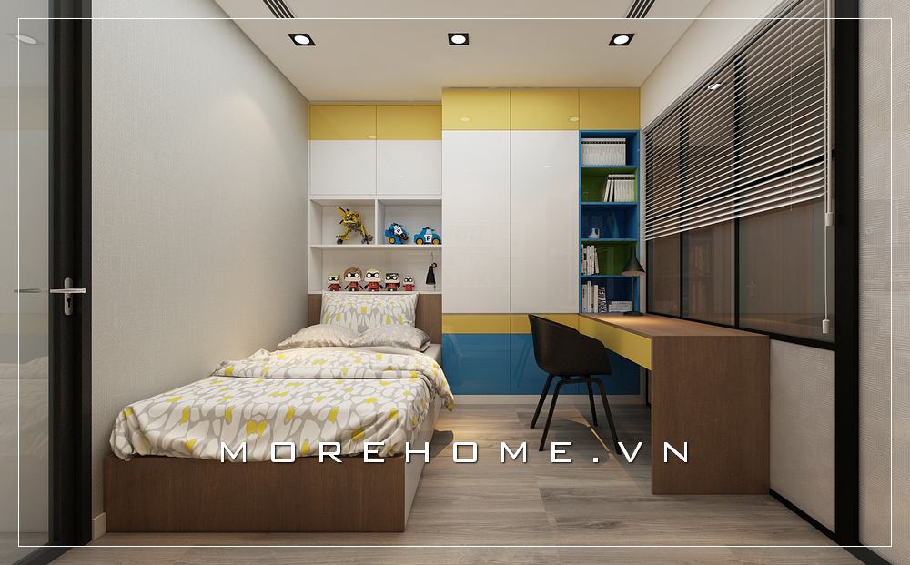 Mẫu giường ngủ trẻ em dạng hộp thiết kế thêm ngăn kéo phía dưới giúp con có một không gian lớn để lưu trữ đồ đạc, quần áo của mình