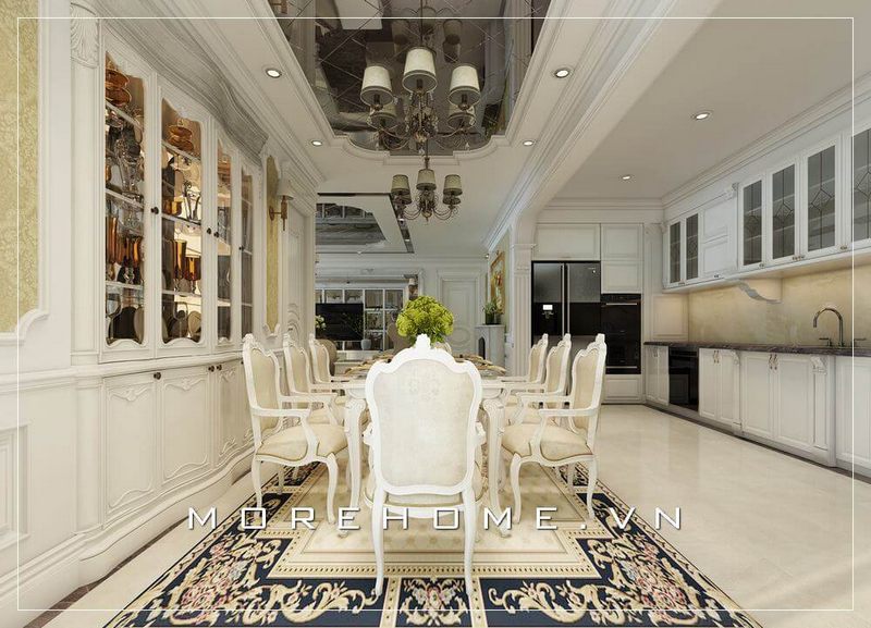 Thiết kế nội thất phòng ăn biệt thự tân cổ điển sang trọng và đẳng cấp