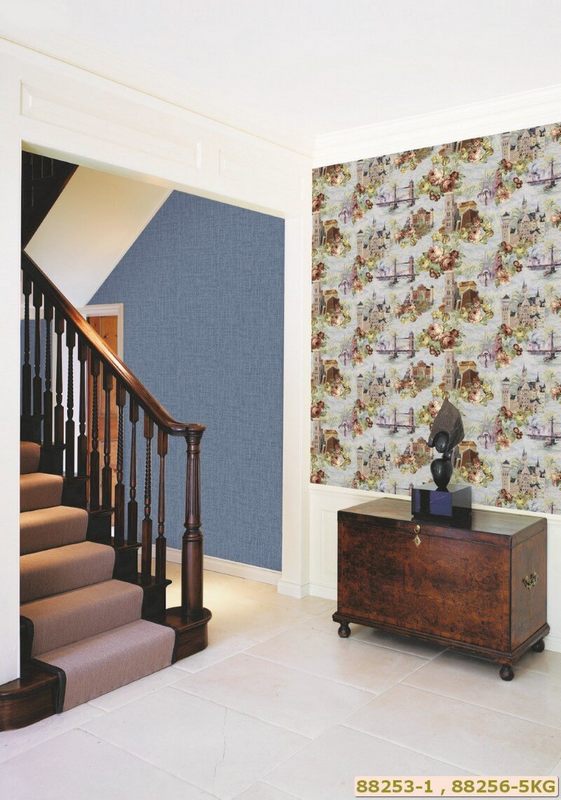 Trên nền tường màu trắng sử dụng giấy dán tường họa tiết mã 88253-1 kết hợp cùng giấy dán tường màu xanh coban mã 88256-5 khiến ngôi nhà của bạn trở nên thu hút và bắt mắt hơn