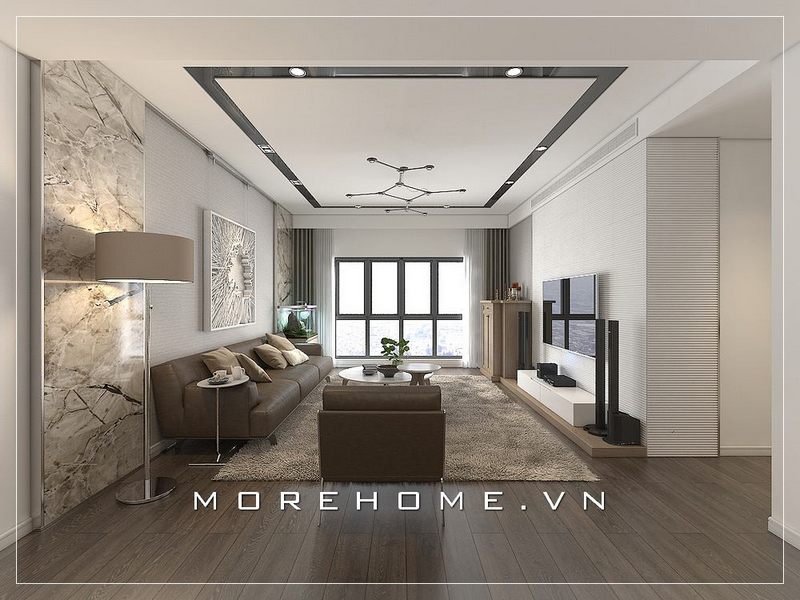 Vẻ đẹp tinh tế của bộ sofa da nâu cao cấp được thiết kế theo kiểu dáng văng tiện lợi sẽ khiến mọi người thích thú khi nhìn thấy phòng khách căn hộ chung cư.