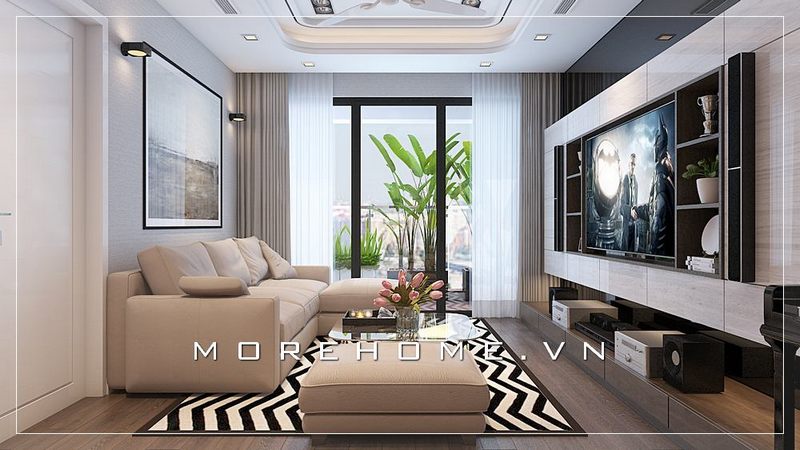 Kết hợp thảm trải sàn không chỉ tạo điểm nhấn cho không gian mà còn mang đến sự ấm cúng và gần gũi cho phòng khách nhỏ xinh. Thảm có thể được sử dụng để phân chia khu vực, ví dụ như tách biệt giữa ghế sofa và bàn trà, giúp căn phòng trở nên rõ ràng và hài hòa hơn. Hãy chọn thảm có màu sắc trung tính hoặc họa tiết đơn giản để không làm rối mắt, đồng thời vẫn giữ được vẻ thanh lịch.