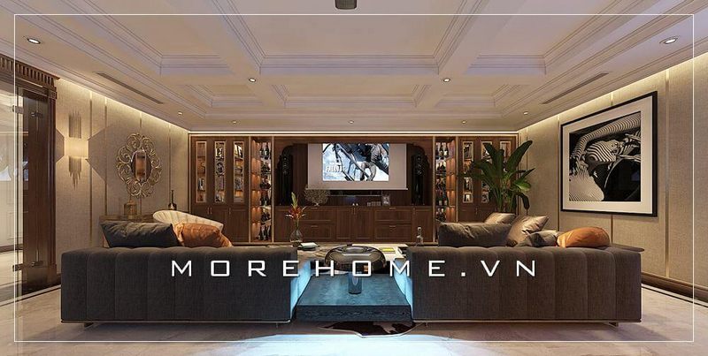 Thiết kế nội thất phòng khách biệt thự theo phong cách tân cổ điển sang trọng và cao cấp.